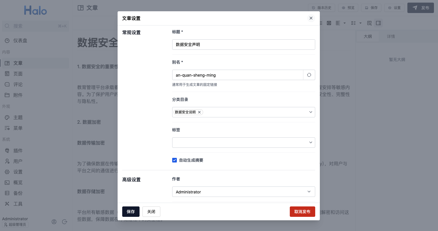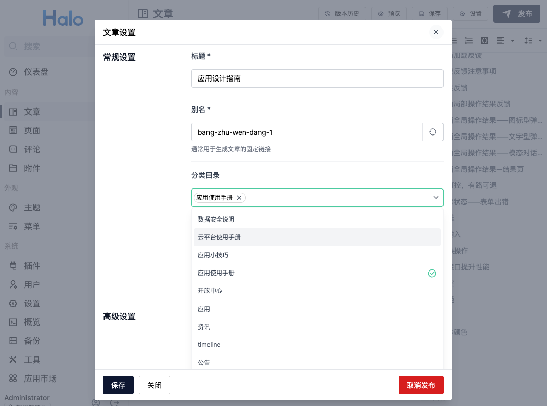文章设置