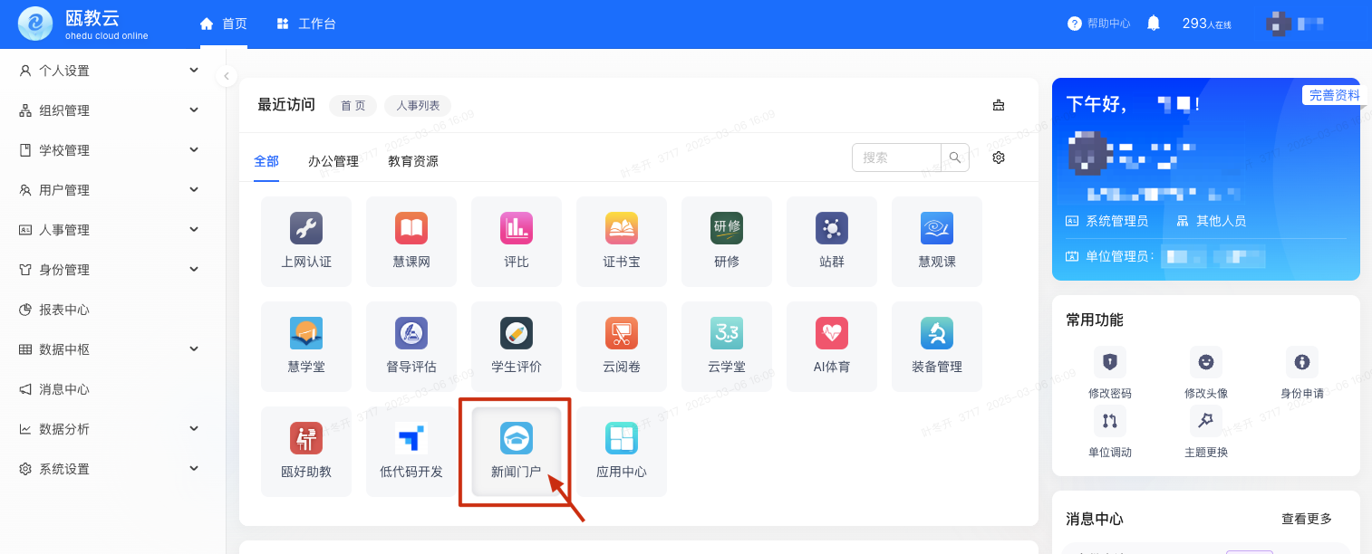 点击打开“新闻门户”,跳转进入到新闻门户管理端平台。